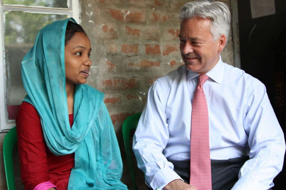 On his visit to Bangladesh earlier this month Minister Alan Duncan meets Rabya, a Rana Plaza survivor at the Centre for Rehabilitation of the Paralysed in Savar, Dhaka. Picture: Narayan Debnath/DFID