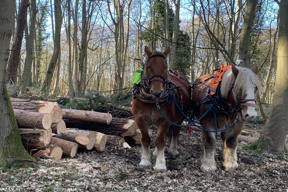 The woody debris was brought onto site using heavy horses to reduce the need for heavy machinery, which in turn reduces the project’s carbon footprint.