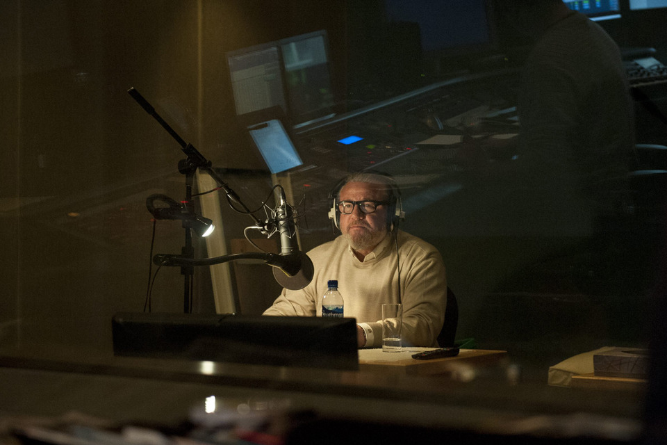 Ray Winstone sits in the recording room, waiting to do his voice-over for Armed Forces Day 2013 [Picture: Sergeant Jez Doak, Crown copyright]