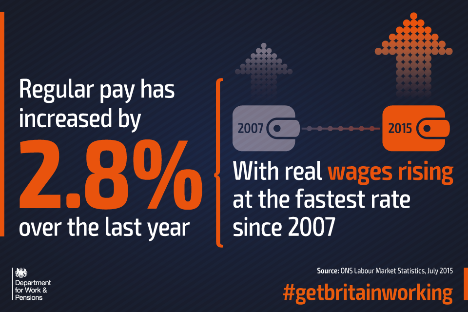 Figures released today (15 July 2015) show that real wages have grown again – for the eighth consecutive month.