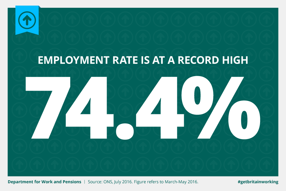 The Office for National Statistics confirmed today that there are a record 31.7 million people now in work – up by 624,000 in the past year and over 2.6 million since 2010.