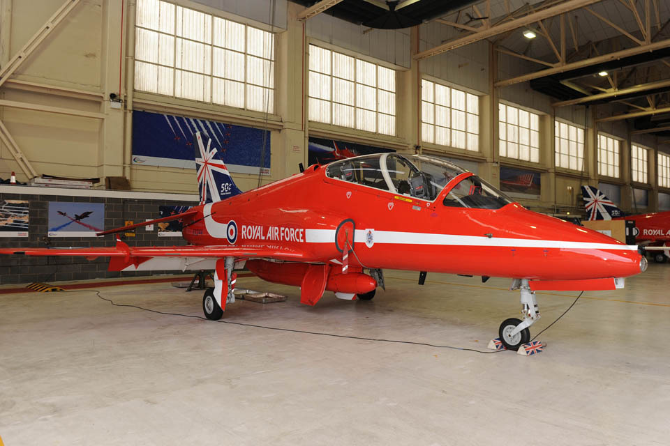 A Red Arrows Hawk jet bearing the team's 50th display season tail design and logo [Picture: Senior Aircraftman Craig Marshall, Crown copyright]