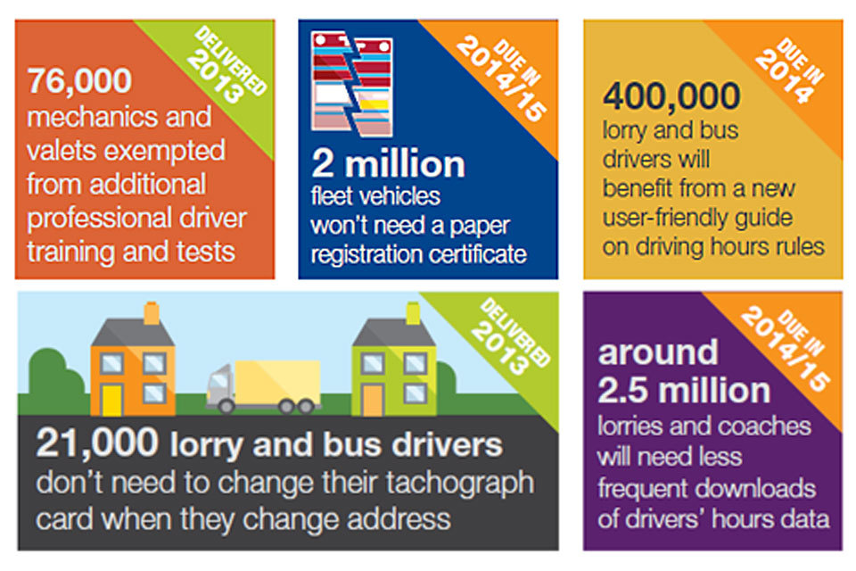 Changes made to transport rules through the Red Tape Challenge are already saving business over £70 million a year and saving private motorists over £100 million a year and include:
