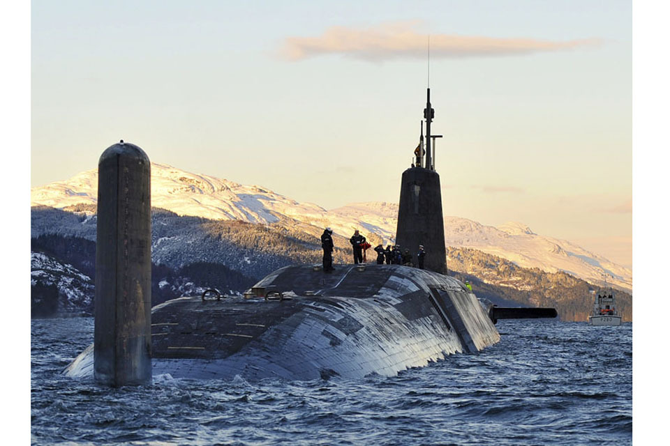 Nuclear submarine HMS Vanguard arriving back at HM Naval Base Clyde (stock image) [Picture: CPOA(Phot) Tam McDonald, Crown Copyright/MOD 2010]