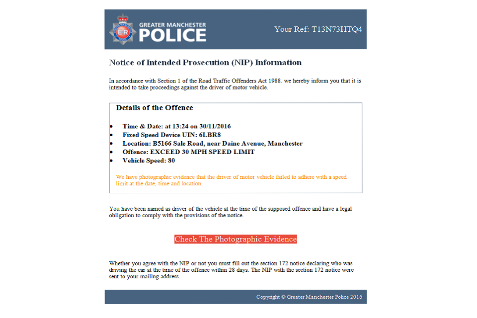 Fraudsters are sending out a high number of phishing emails to email addresses connected to businesses in the United Kingdom, with the message subject heading ‘Notice of Intended Prosecution’ and ‘NIP - Notice Number’ followed by a combination of letters and numbers.