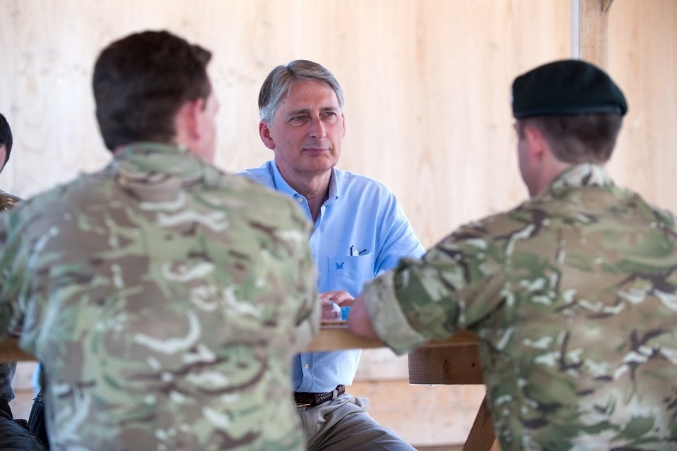 Philip Hammond meets with troops in Afghanistan [Picture: Corporal Si Longworth, Crown Copyright]