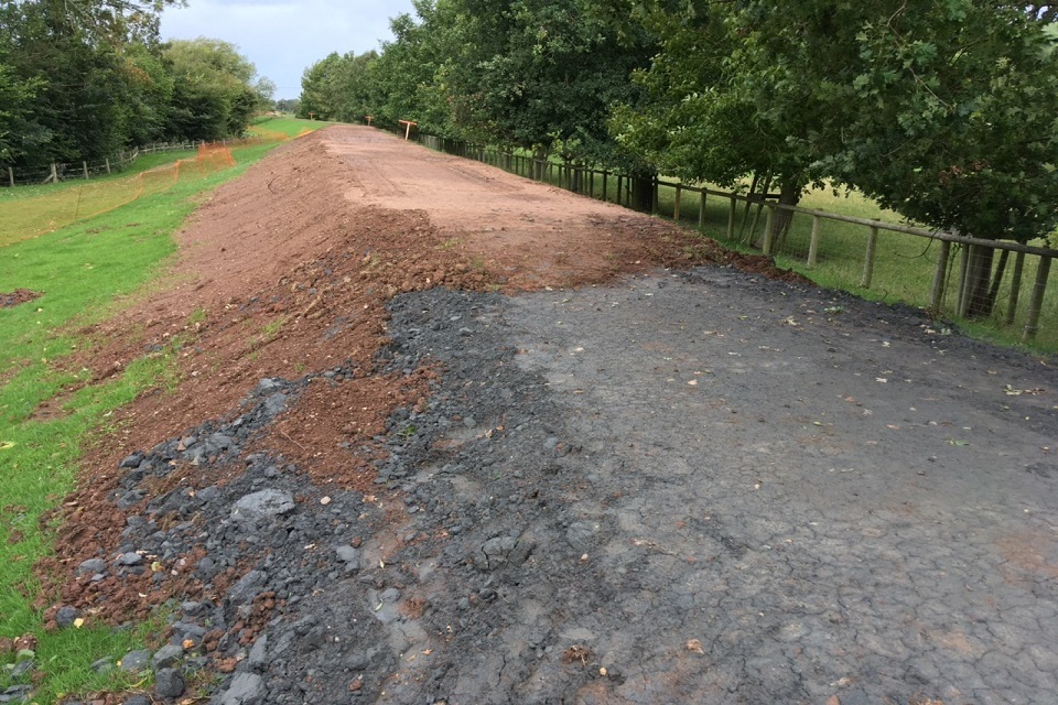 The newly-repaired flood embankment at Hampton Bishop