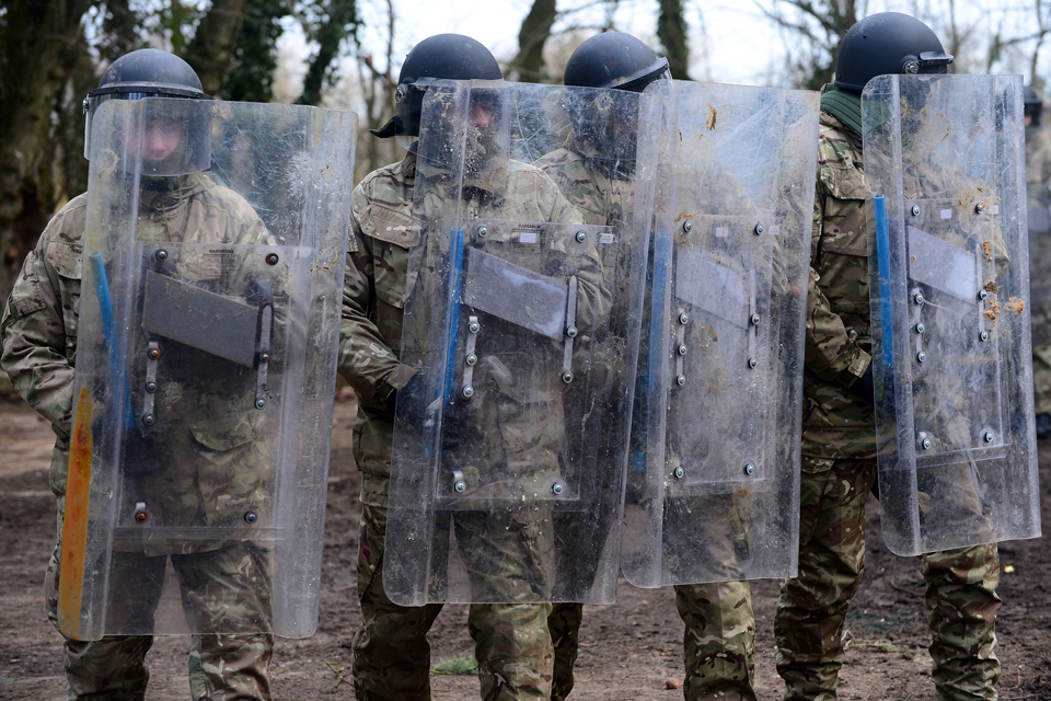 Reservists from the London Regiment and members of the Irish Guards taking part in public order training [Picture: Sergeant Russ Nolan RLC, Crown copyright]