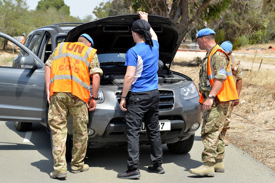 Army reservists from 4th Battalion The Mercian Regiment conduct a vehicle check during training in Cyprus [Picture: Corporal Steve Blake, Crown copyright]