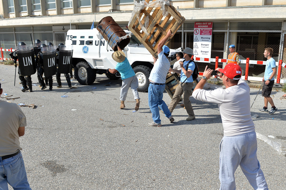 The soldiers are being trained to deal with a full-scale riot in a worst-case scenario. However, the reality is that violence has not broken out between the Greek and Turkish Cypriots for a long time, and positive noises are being made about political negotiations for the first time in half-a-decade.