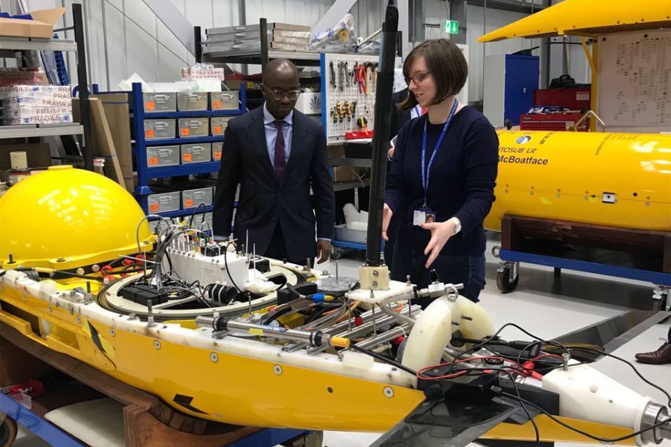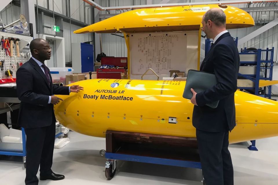 As part of his visit, Sam Gyimah toured NOC’s Marine Robotics Innovation Centre, which houses the Boaty McBoatface autosub