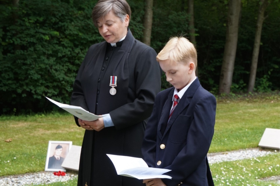 MOD’s Joint Casualty and Compassionate Centre has been able to trace Sgt Bent’s Niece, Mary Cox from Kings Lynn, her husband Julian and their grandson (Sgt Bent’s Great Great Nephew) 12 year old Teddy, who all travelled to the Netherlands today. At the service, Teddy joined Rev Colley and read part of the Kohima Epitaph, watched by his grandparents and those assembled at the graveside.