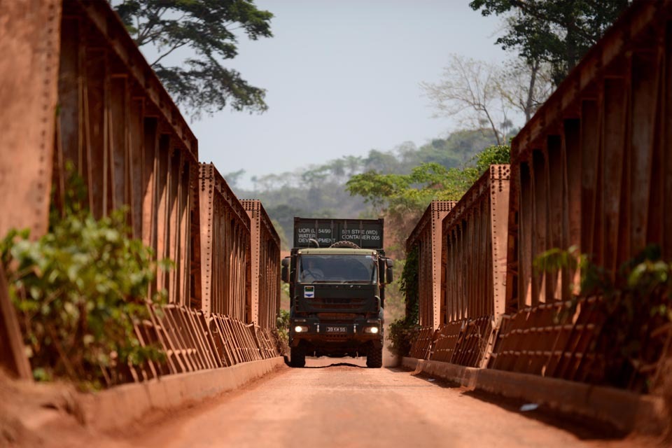 A 521 Specialist Team Royal Engineers (Water Development) vehicle crosses a bridge in Sierra Leone [Picture: Corporal Andy Reddy, Crown copyright]