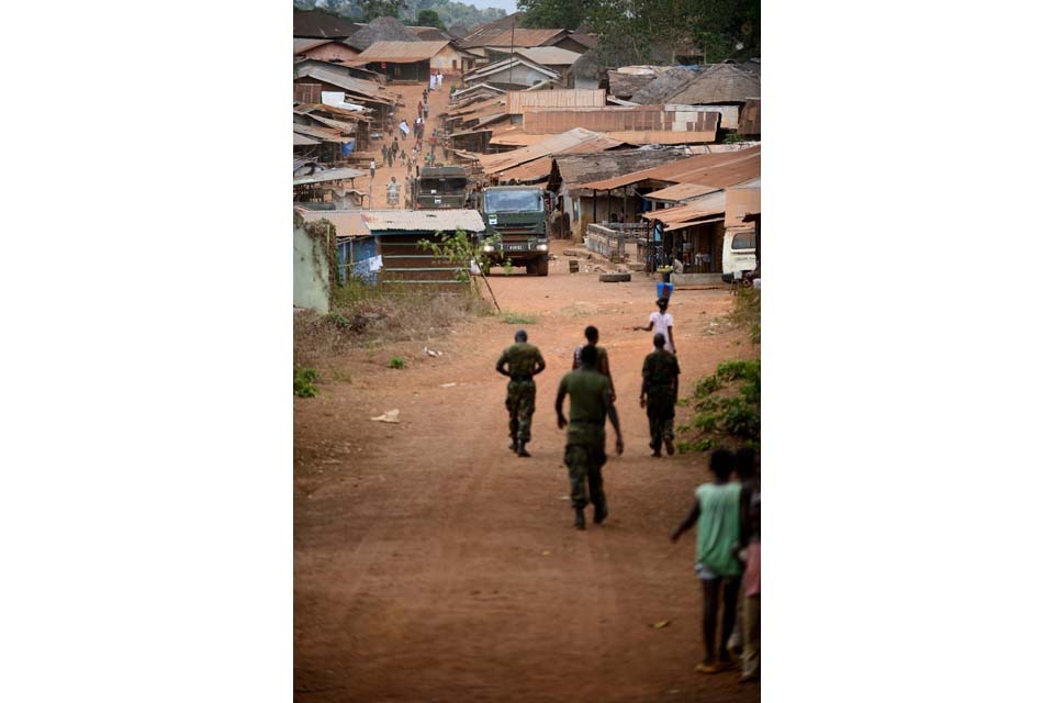 The military engineers drive through a town in Sierra Leone [Picture: Corporal Andy Reddy, Crown copyright]