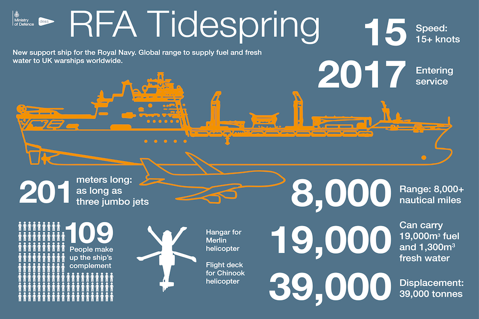 RFA Tidespring’s UK arrival is a key milestone in 2017, the Year of the Royal Navy, which will also see the MOD develop world-class ships and submarines in support of Britain’s role as a leading naval power.