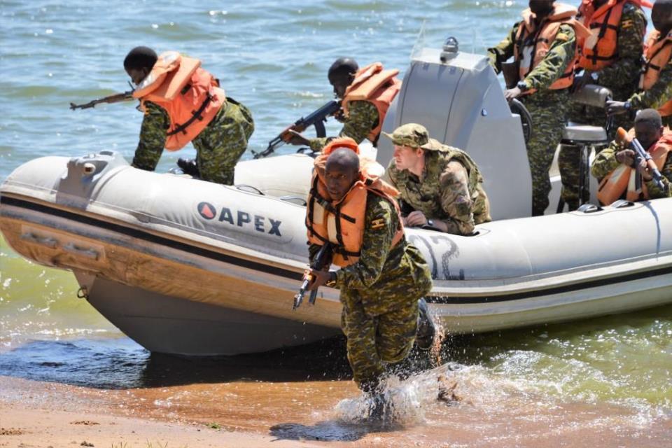 On 15 February, a team of instructors from the Royal Marines and Royal Navy completed 28 days of Mission Specific Training (MST) for Uganda Peoples Defence Forces (UPDF) Marines. The training, which was organised by the British Peace Support Team (Africa), was broadly intended to build capacity within the UPDF and more specifically in preparation for their role in Somalia under the African Union Mission in Somalia (AMISOM).