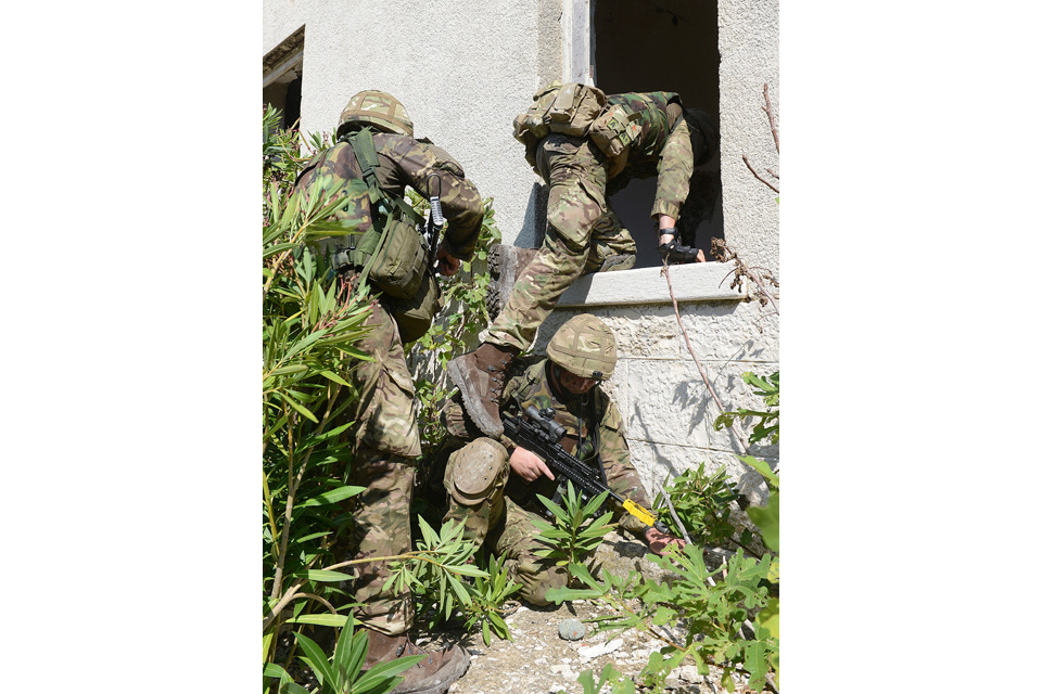 Royal Marines enter a building through a window during the assault on Sazan Island [Picture: Petty Officer (Photographer) Sean Clee, Crown copyright]