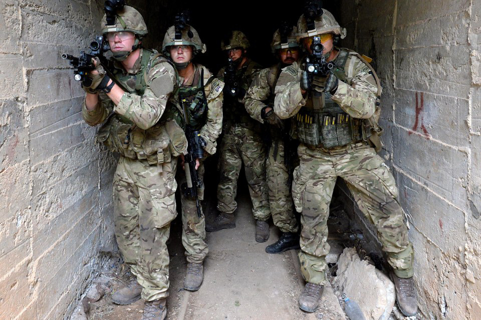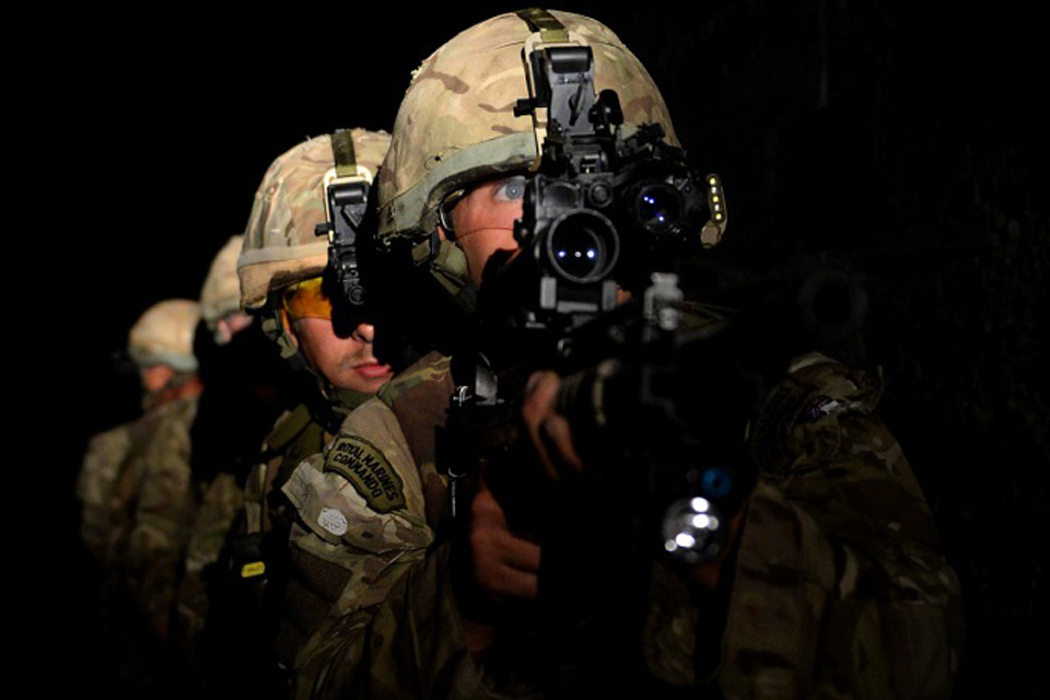 A Royal Marine looks through his rifle scope from a protected position [Picture: Leading Airman (Photographer) Jason Ballard, Crown copyright]