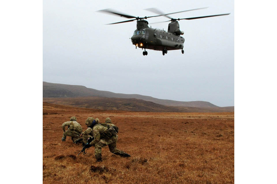 Royal Marines of Juliet Company, 42 Commando, being inserted into the field by an RAF Chinook [Picture: Leading Airman (Photographer) Jason Ballard, Crown copyright]