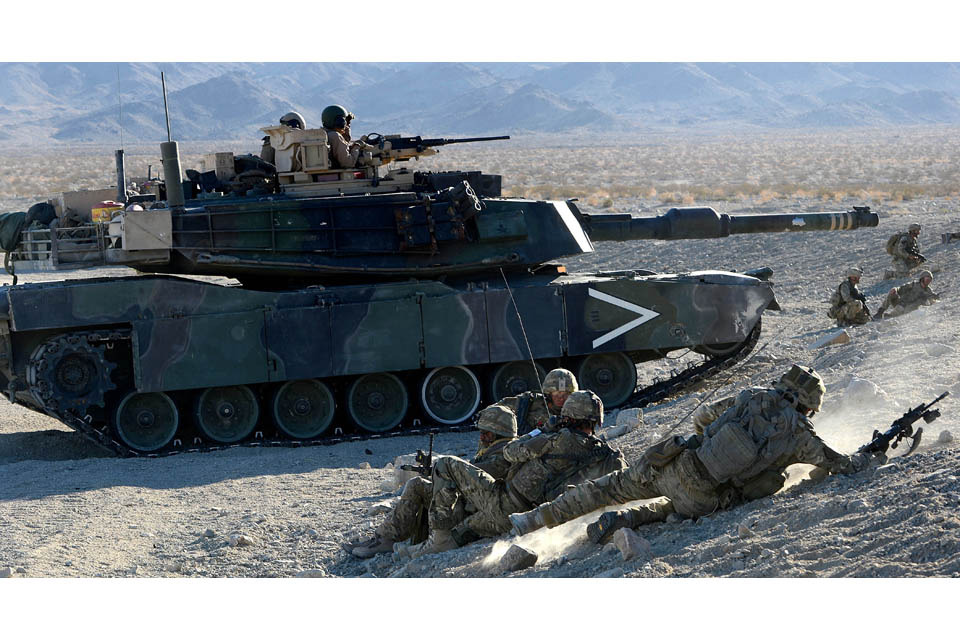 Royal Marines commandos attack enemy positions with support from an American M1 Abrams tank [Picture: Petty Officer (Photographer) Sean Clee, Crown copyright]