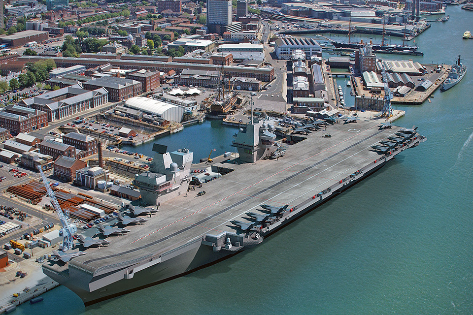 A computer generated image (CGI) of one of the two new Royal Navy aircraft carriers. Crown Copyright.