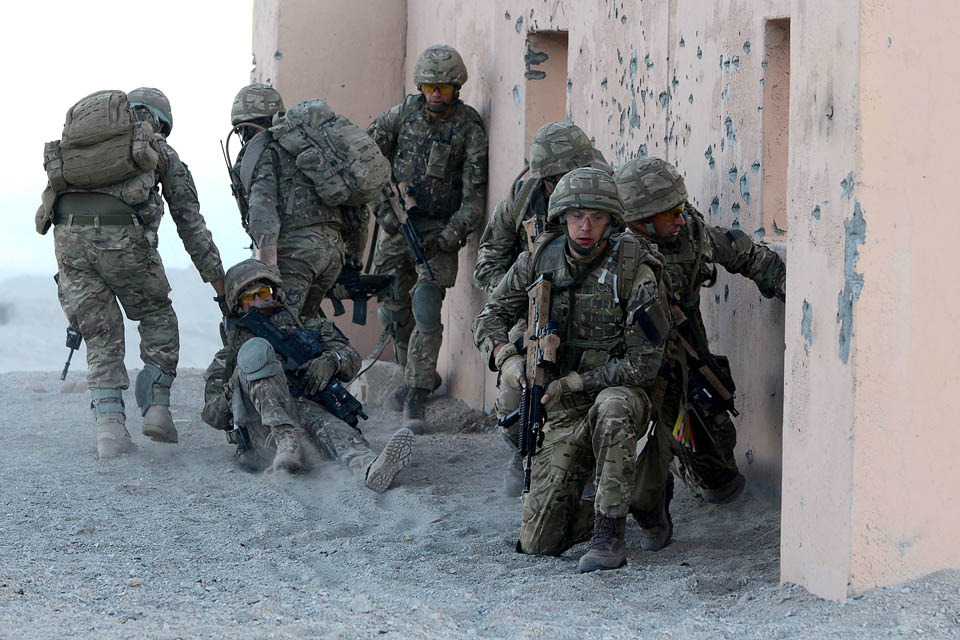 Royal Marines from Alpha and Bravo Companies conducting a live fire attack in a built-up area [Picture: Petty Officer (Photographer) Sean Clee, Crown copyright]