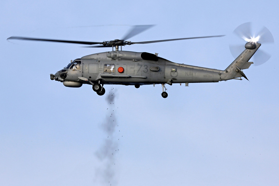 HMAS Melbourne's Seahawk helicopter destroying a pirate vessel off the coast of Somalia [Picture: ABIS Jayson Tufrey, Commonwealth of Australia]