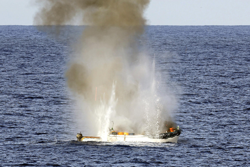 A pirate skiff is destroyed [Picture: ABIS Jayson Tufrey, Commonwealth of Australia]