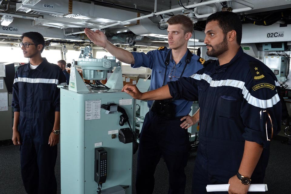 Lieutenant Commander Sharokh Esfahani was on hand to help explain the traditions and conventions of Saudi Arabia. As the cultural advisor to Commodore Paddy McAlpine, Commander United Kingdom Task Group, Lieutenant Commander Esfahani visited all the Royal Navy ships prior to the personnel exchanges. He briefed the sailors on the history of the Kingdom of Saudi Arabia and gave some background to the differences, but also the similarities, of the 2 cultures.