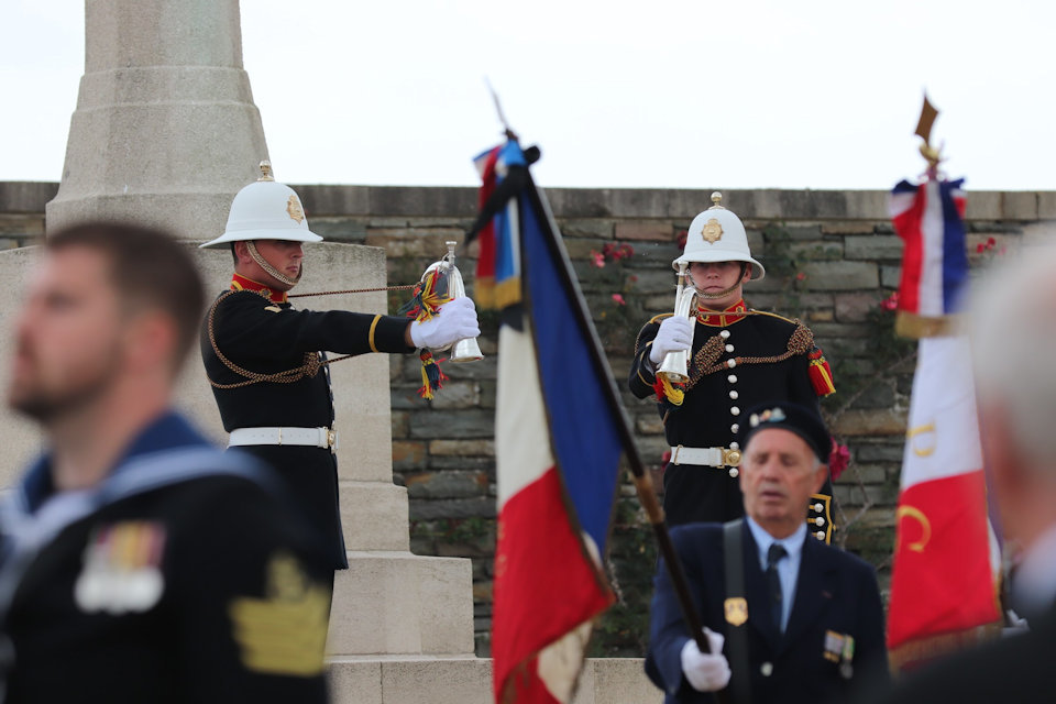 Captain Keri Harris, Naval Attaché to France raises a salute in honour of AB Robertson, Crown Copyright, All rights reserved