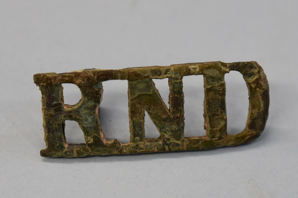 Royal Naval Division shoulder title that was discovered in one of AB Robertson’s pockets, Copyright Commonwealth War Graves Commission, All rights reserved