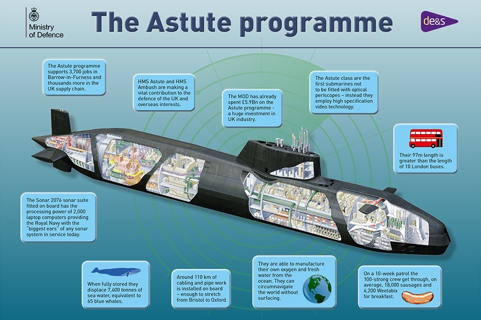 Artful, which will provide the Royal Navy with its most technologically advanced submarine, is currently preparing to leave the construction yard in Barrow-in-Furness for sea trials, before joining the Royal Navy fleet around the end of this year. The seven Astute Class submarines support the jobs of 3,700 workers and 400 supply companies across the UK supply chain.