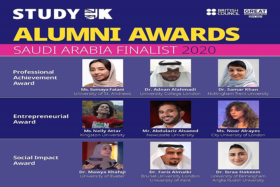 The British Embassy Riyadh and British Council Saudi Arabia announced the 9 finalists for the Study UK Alumni Awards 2019-20 in Saudi Arabia.