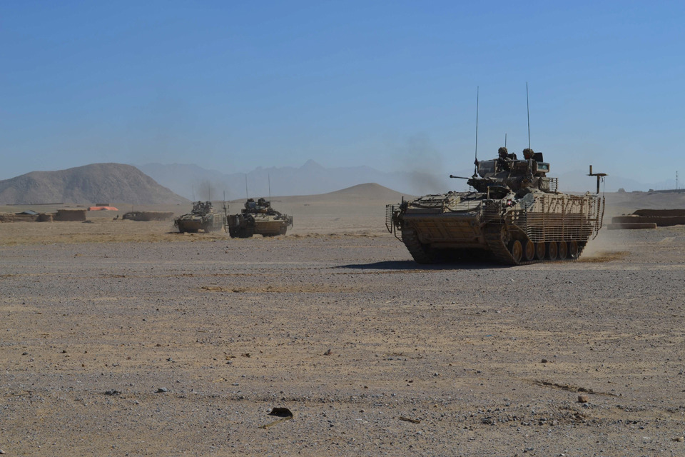 British Army Warrior fighting vehicles in the Upper Gereshk Valley, Helmand province, southern Afghanistan [Picture: Crown copyright]