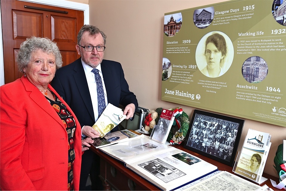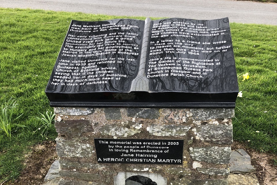 Jane Haining was born in the village of Dunscore in Dumfrieshire. A cairn in her memory stands outside Dunscore Parish Church, and a memorial to her life was opened inside the Church in January 2018. It features photographs, letters, documents and other personal effects relating to the missionary. Mr Mundell visited the memorial and heritage centre just ahead of the march [on Friday 12 April].