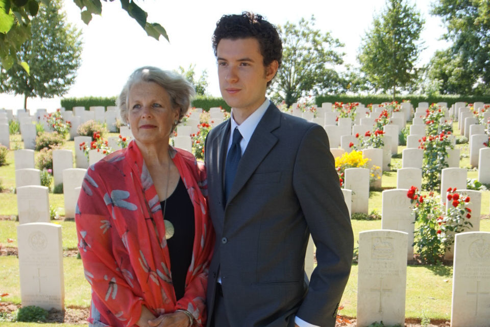 Great nephew Sebastien Molgart with his mother Liane Benoit at the graveside of Pilot Officer McCann. Crown Copyright. All rights reserved.