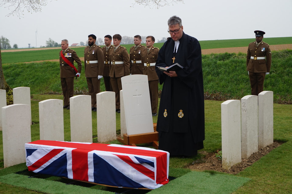 It is a tremendous honour and privilege for me today to conduct the funeral service of 1 our fallen comrades over 100 years since he fell in battle. He is known unto God.