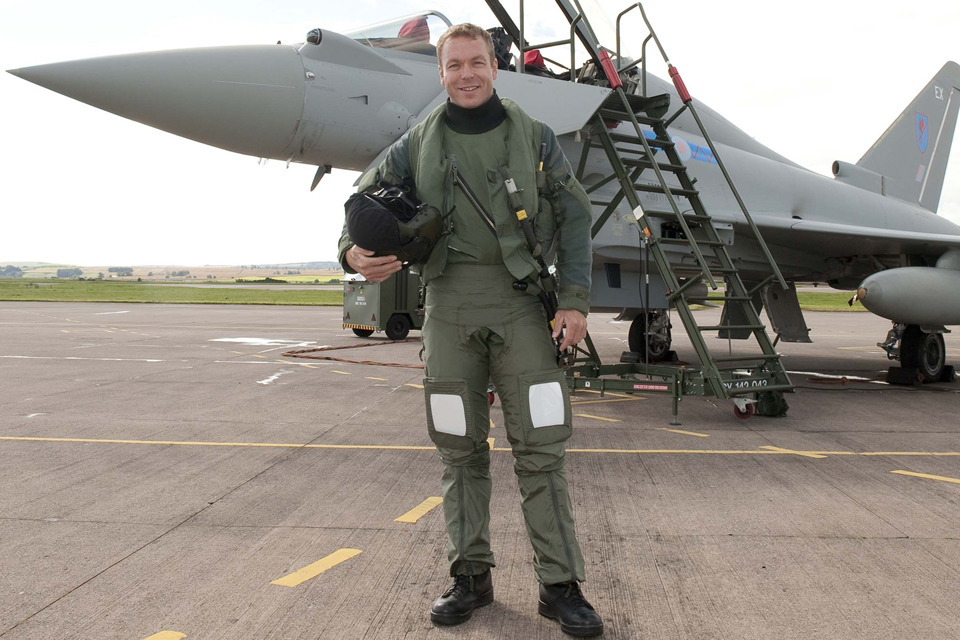 Sir Chris Hoy took a trip in a Typhoon on a visit to RAF Leuchars last year [Picture: Senior Aircraftman Ash Reynolds, Crown copyright]