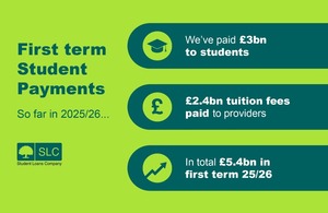 The Student Loans Company (SLC) has paid over £5bn in first term Maintenance and Tuition Fee Loan payments.