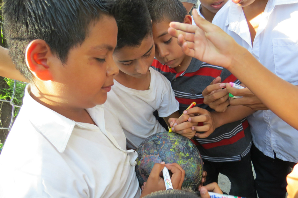 Kids from Centro Escolar "Las Flores" signing The Ball