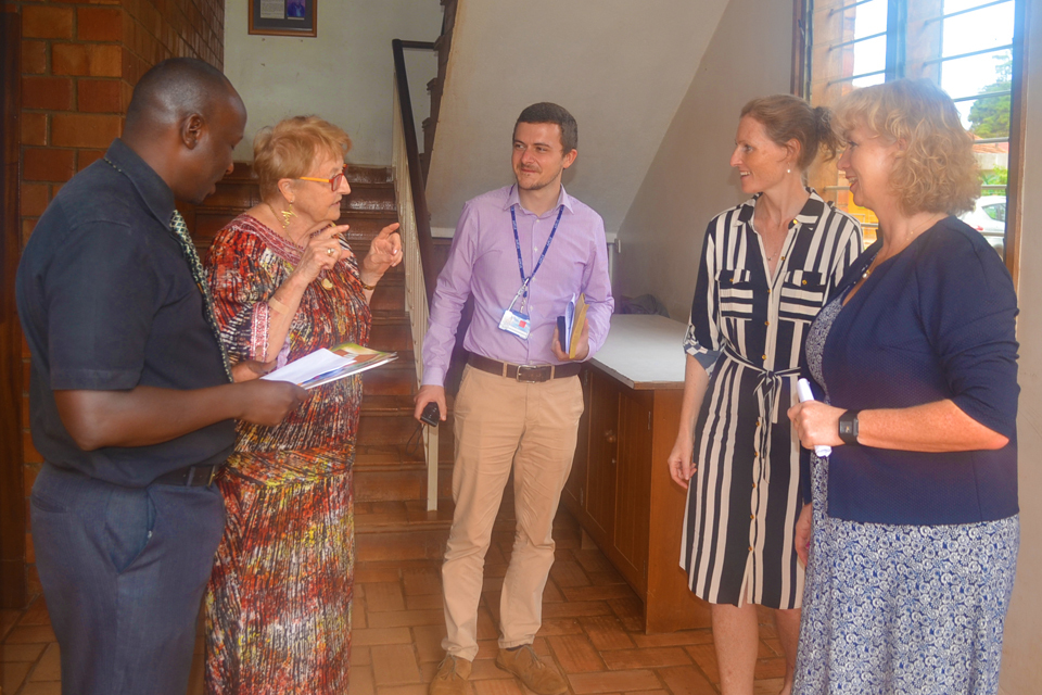 British High Commissioner HE Alison Blackburne and Deputy High Commissioner Mary Shockledge are taken on a tour of the Hospice Africa facilities by Founder, Dr Anne Merriman