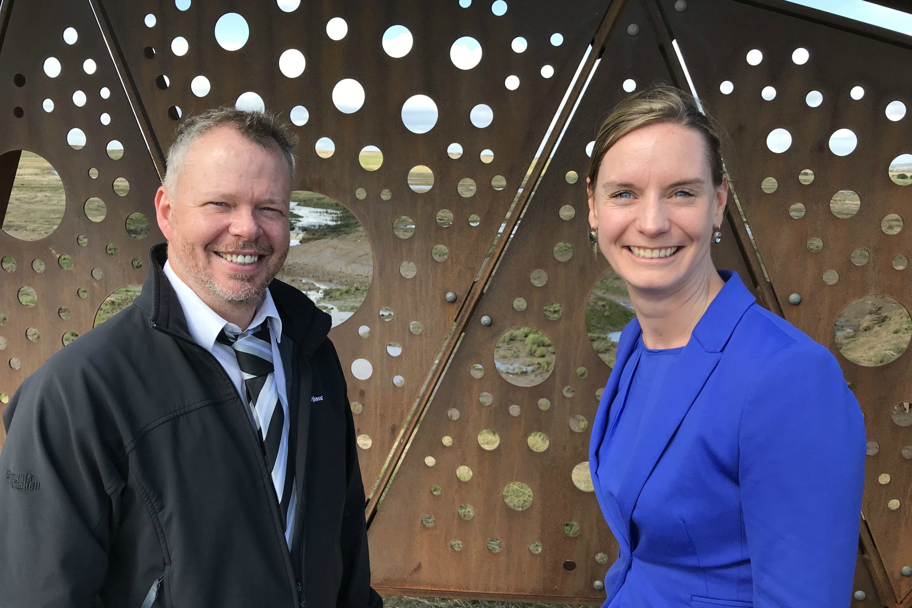 The Environment Agency's Dennis Hancock with Marlou Cremers from SABIC, at the Greatham Creek flood alleviation scheme