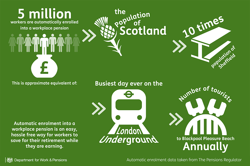 The number of employees automatically enrolled into a workplace pension scheme has passed the 5 million mark.