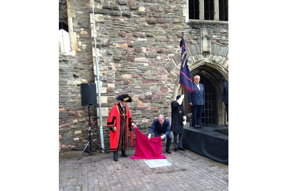 Communities Minister paid tribute to Captain Douglas Reynolds as commemorative Victoria Cross paving stone was laid in his honour in Bristol.