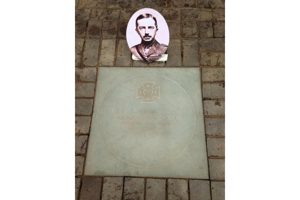 Victoria Cross paving stone in honour of Captain Douglas Reynolds.