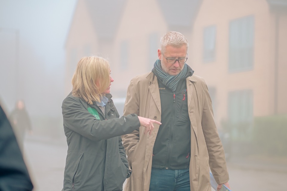 Natural England Chief Executive Marian Spain speaking with Northstone Development Director Jon England at the Airie development, off St Helen’s Road, Bolton