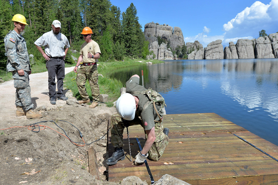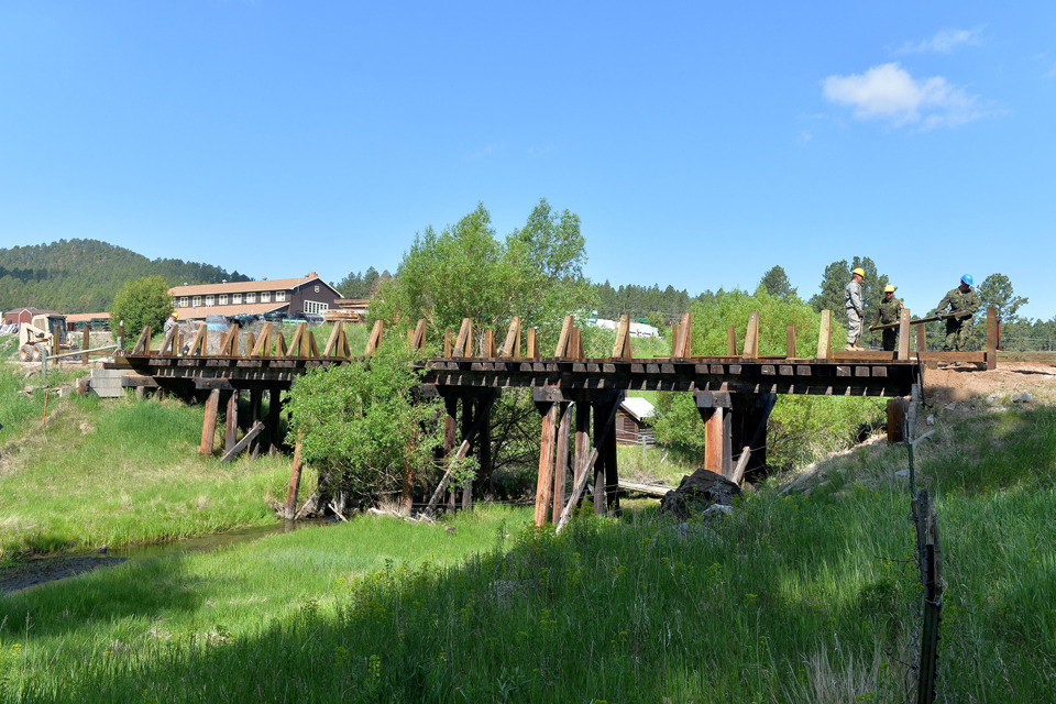 The Black Hills Playhouse project is one of several being undertaken by 72 Engineer Regiment. Other tasks include restoring 5 dilapidated bridges and building 2 new fishing piers, together with steps up a steep embankment for military veterans to use, and fitting a kilometre of safety fencing along the annual buffalo herding route through Custer State Park.