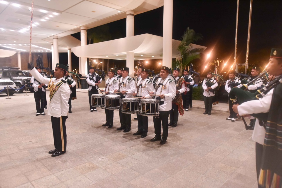 As guests departed the event, they enjoyed a rousing finale at the entrance to the Theatre provided by the combined Pipes and Drums of the 2nd Battalion, Royal Gurkha Rifles (British Forces Brunei) and the Royal Brunei Armed Forces.