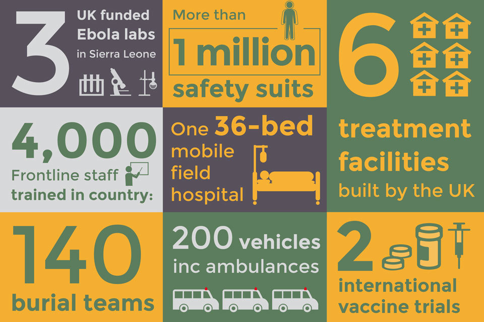 The UK also deployed over 150 NHS volunteers who worked on the frontline to support over 1,500 treatment and isolation beds – more than half of all the beds available for Ebola patients in the country.