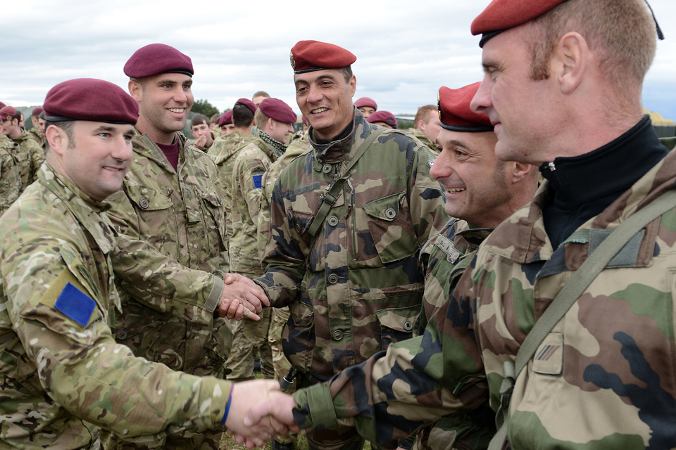 British and French paratroopers congratulate each other after a successful joint exercise (library image) [Picture: Corporal Obi Igbo, Crown copyright]